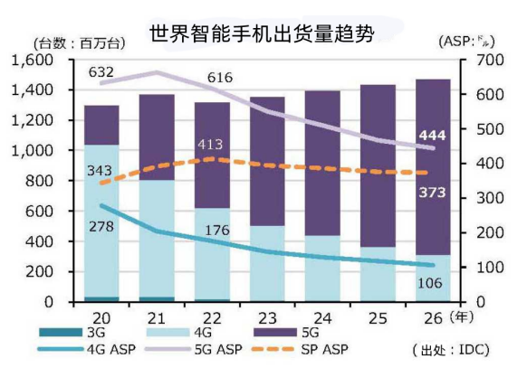 2022年兼容5G(第五代移動通信標準)的智能手機出貨量預計將同比增長23.6%,達到6.88億臺。 這個數字也從之前預測的約7億臺略微下調。